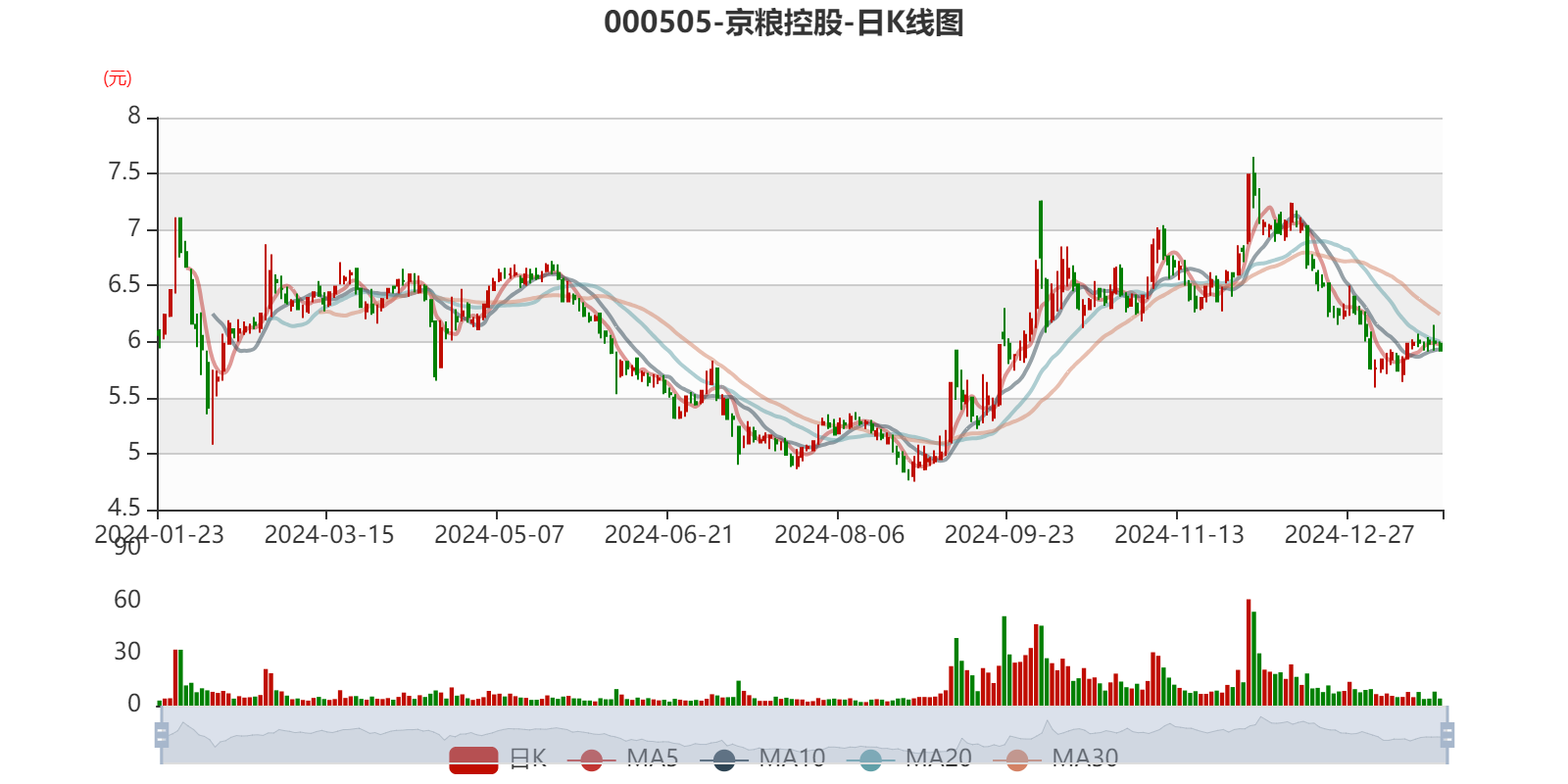 中证智能财讯京粮控股(000505)1月22日晚间披露2024年度业绩预告,预计2024年归母净利润1650万元至2450万元,同比下降76%-84%;扣非净利润预计1500万元-2200万元,同比下降73%-82%;基本每股收益0.0227元/股-0.0337元/股。以1月22日收盘价计算,京粮控股目前市盈率(TTM)约为175.65倍-260.82倍,市净率(LF)约1.37倍,市销率(TTM)约0.32倍。